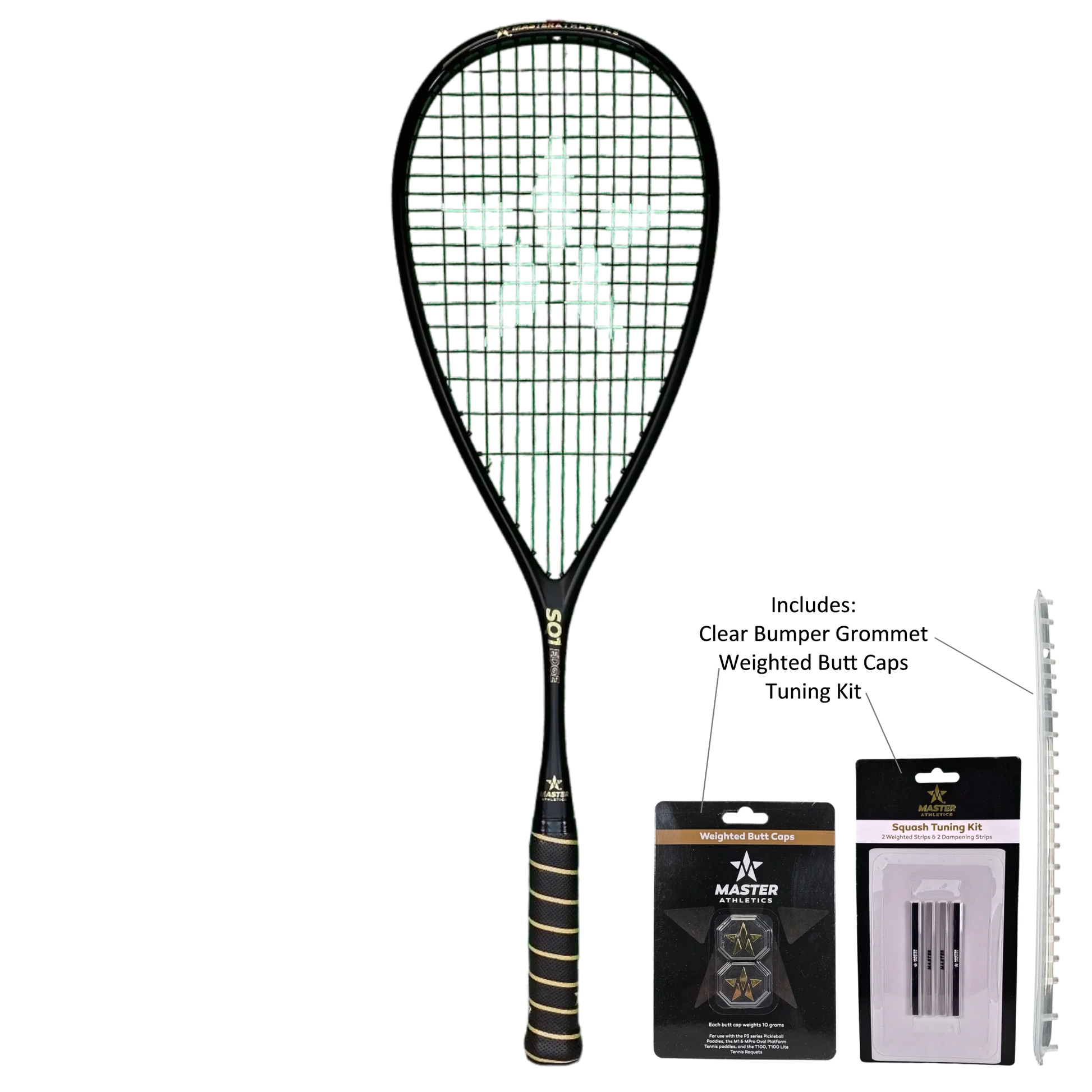 At just 106 g, the Master Athletics SQ1 EDGE is built for ultimate customization. Its unique EDGE system lets you adjust weight and balance to match your playing style, with a tuning kit, weighted butt cap, and clear bumper included. Whether you’re hunting volleys or grinding in the back corners, this racket adapts instantly—making it a weapon for players who refuse to compromise.